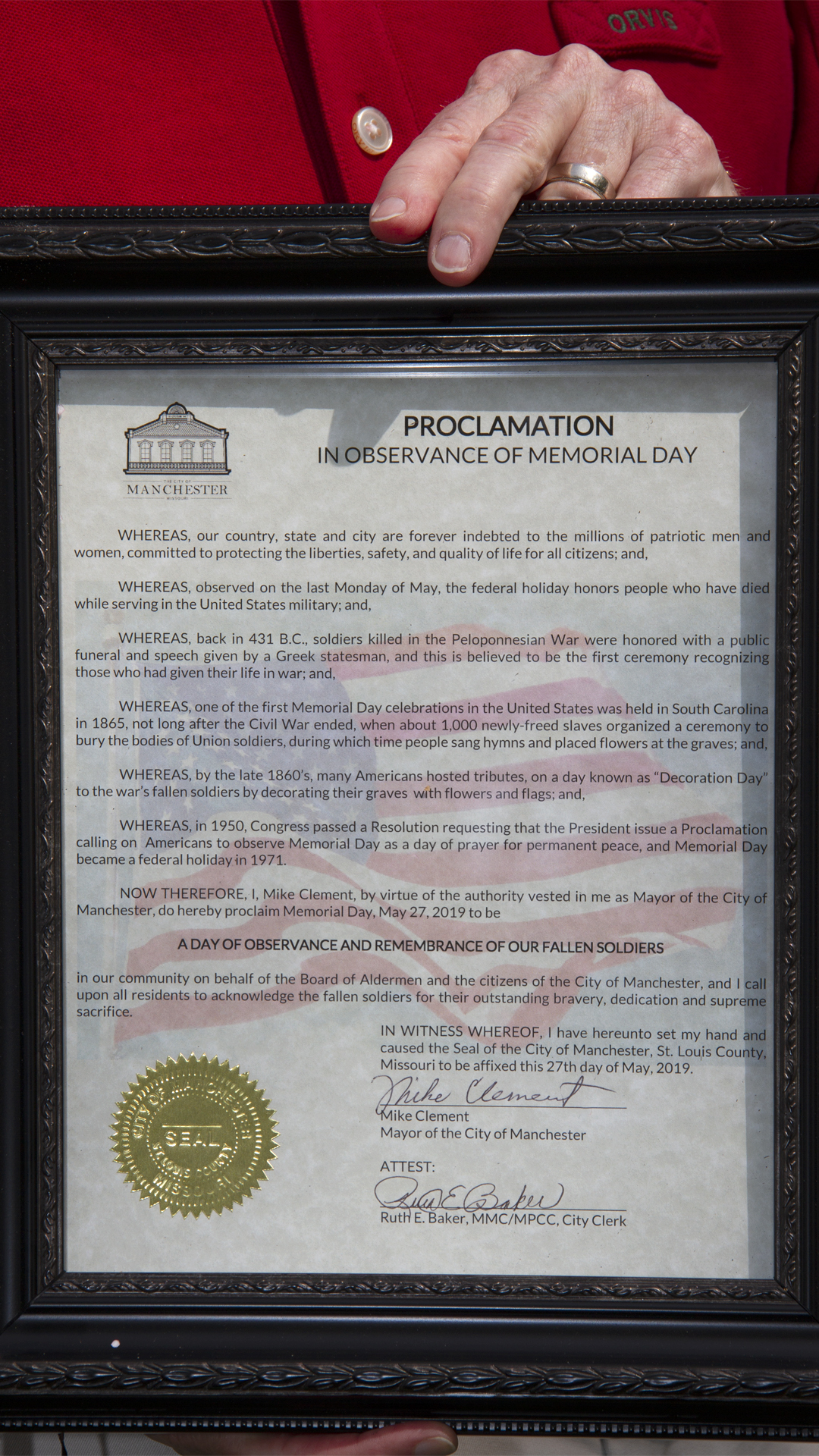 On Monday, May 27, 2019, Manchester, Missouri, held its annual Memorial Day Event at Margaret J. Stoecker Park in the area designated as a Veterans Memorial.