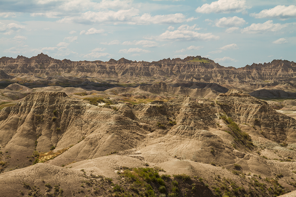Badlands National Park is a national park in southwestern South Dakota that protects 242,756 acres of sharply eroded buttes, pinnacles, and spires blended with the largest undisturbed mixed grass prairie in the United States.