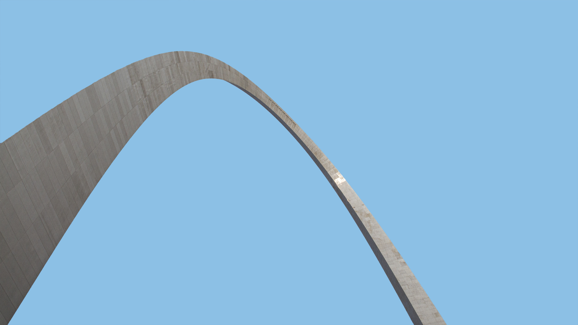 This is a photo display of the river, people in Gateway Arch National Park, and nearby St. Louis Buildings.