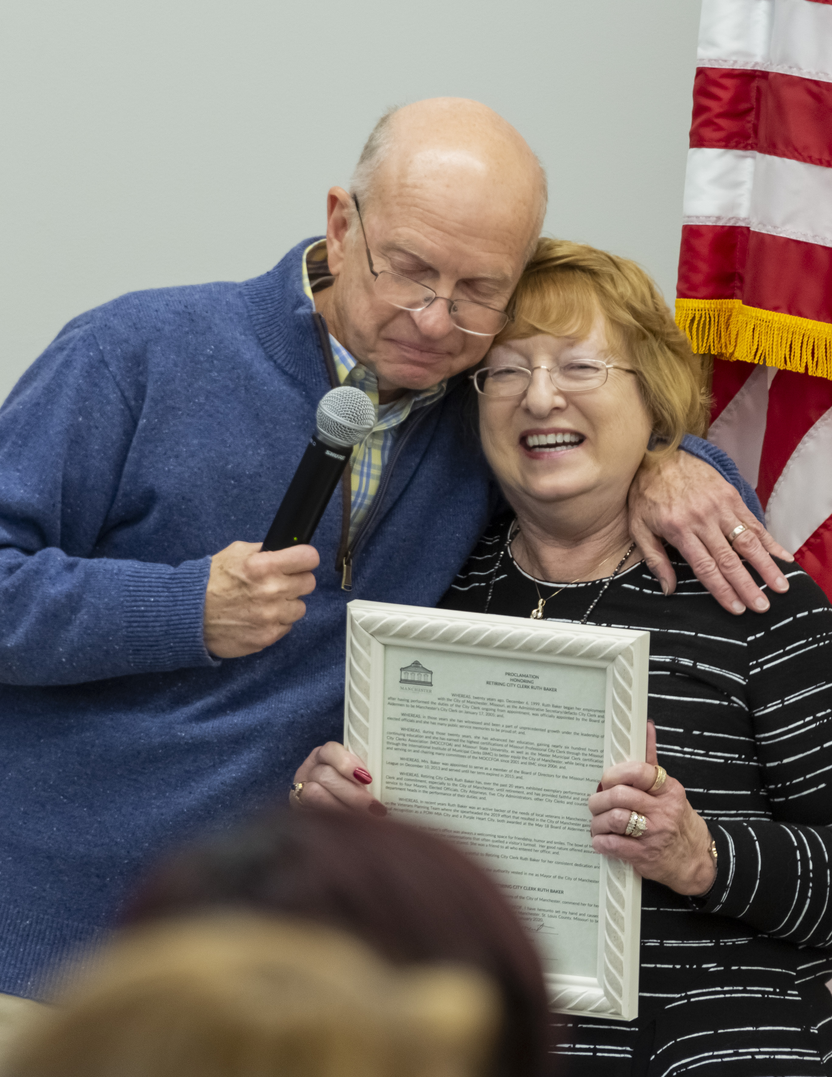 Ruth Baker, the longtime City Clerk for the City of Manchester, MO, is pictured here at her retirement event held 1-10-20.